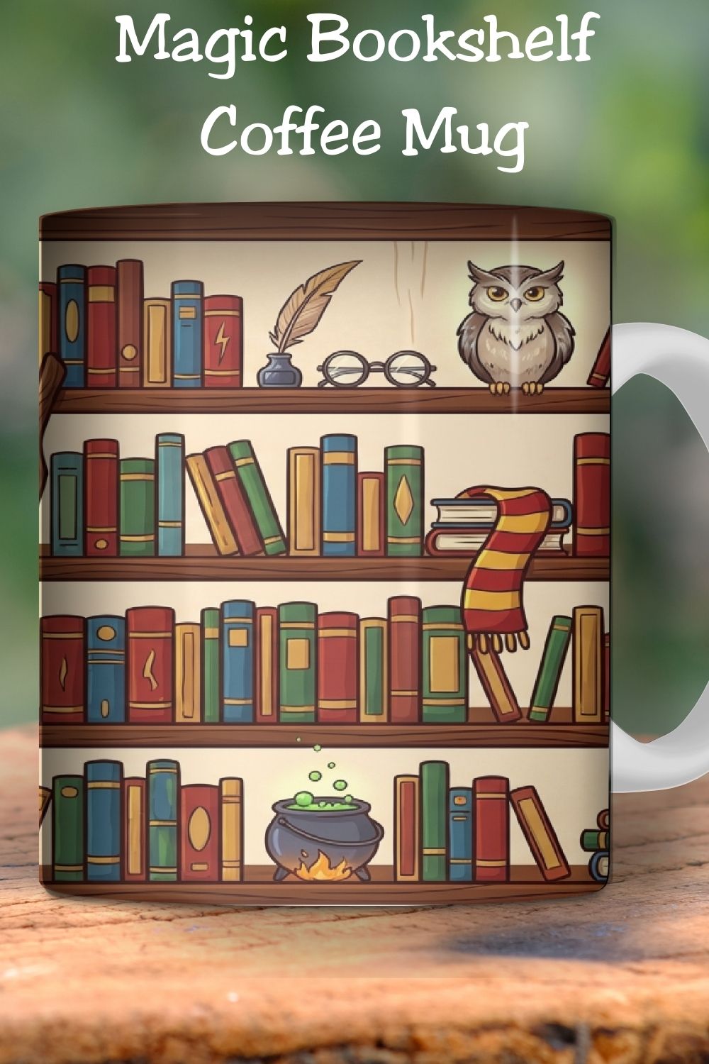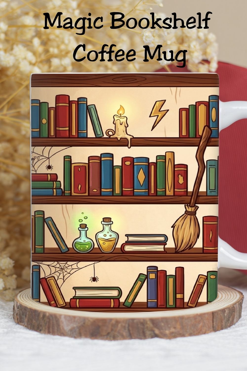 This magic bookshelf mug makes a thoughtful gift for birthdays, holidays, teacher appreciation, book clubs, or anyone who believes books are a kind of magic.
