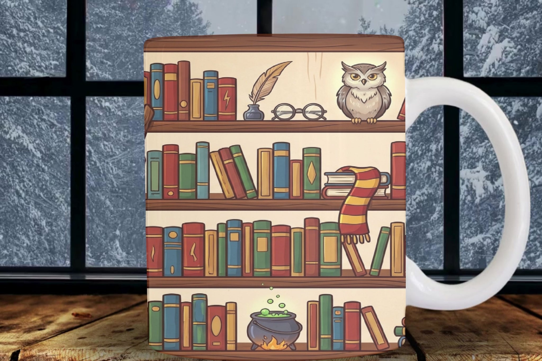 This Magic Bookshelf Mug is a cozy, whimsical design made for readers, fantasy lovers, and anyone who dreams of spellbound libraries and enchanted worlds. Featuring a charming illustrated bookshelf filled with magical details—books, potions, owls, spell tools, and hidden surprises—this mug feels like stepping into a fantasy novel with every sip.