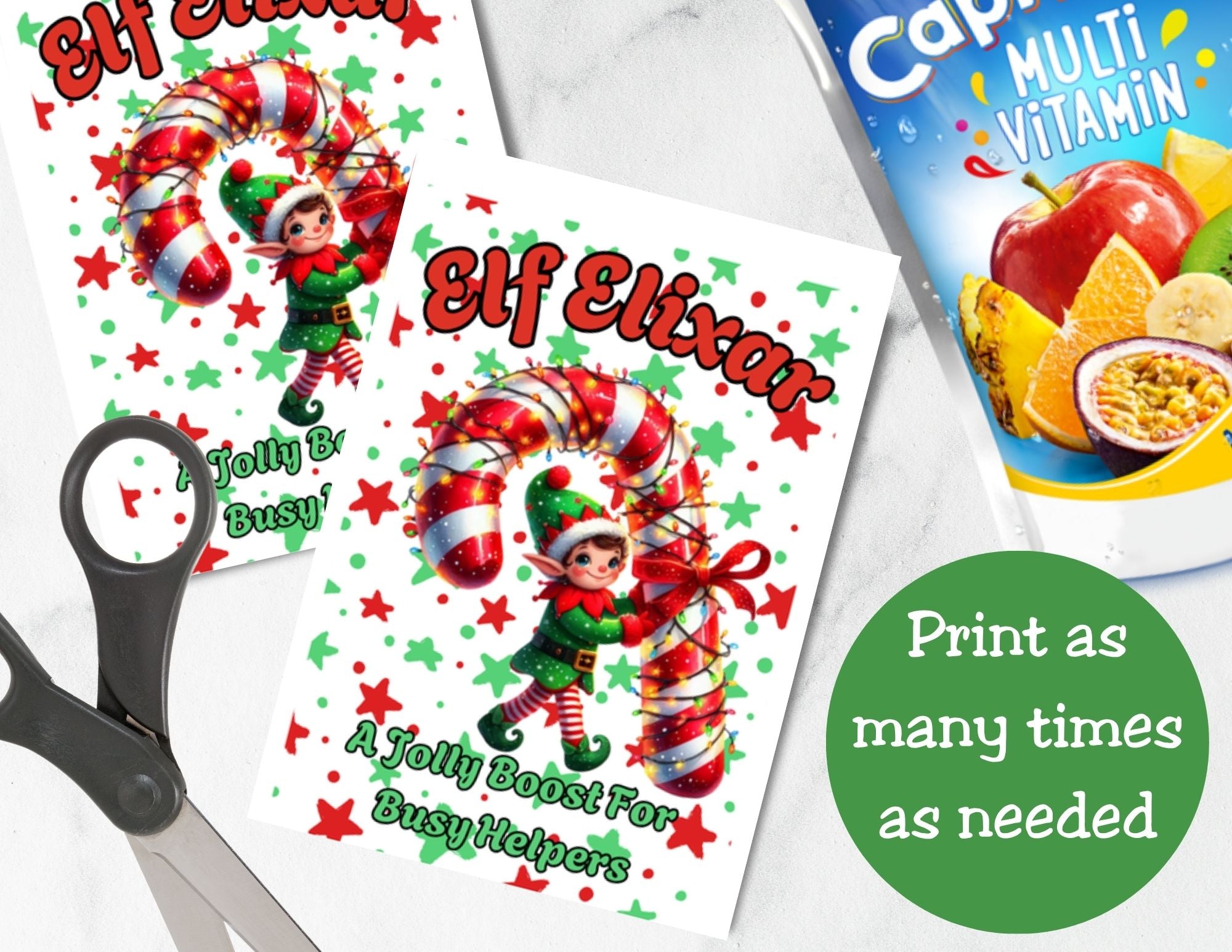🎄 Elf Elixar – Printable Capri Sun Labels for Kids Christmas Parties