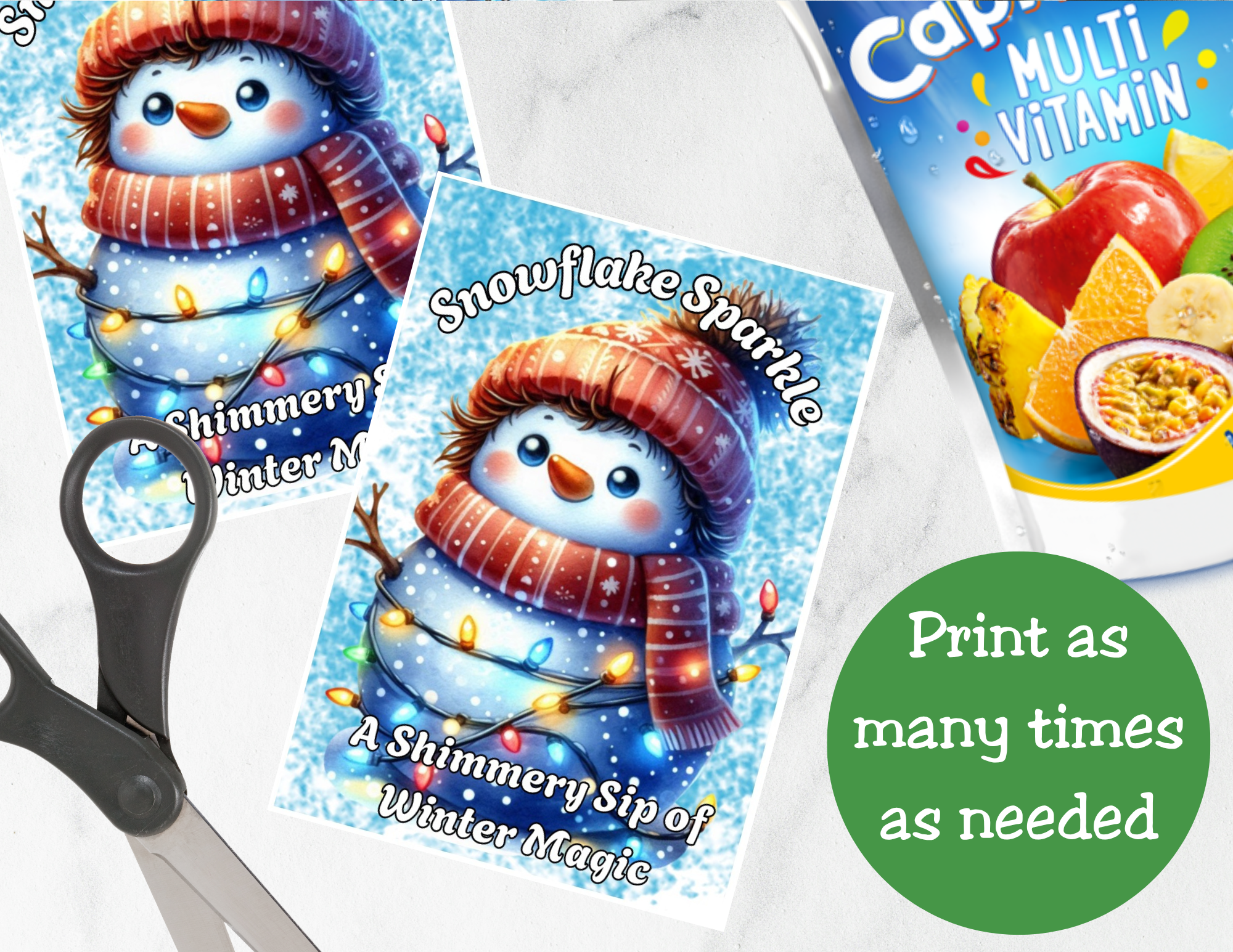 Add a sparkling touch of winter magic to your holiday drinks with these adorable snowman-themed labels—fun, festive, and easy to use!