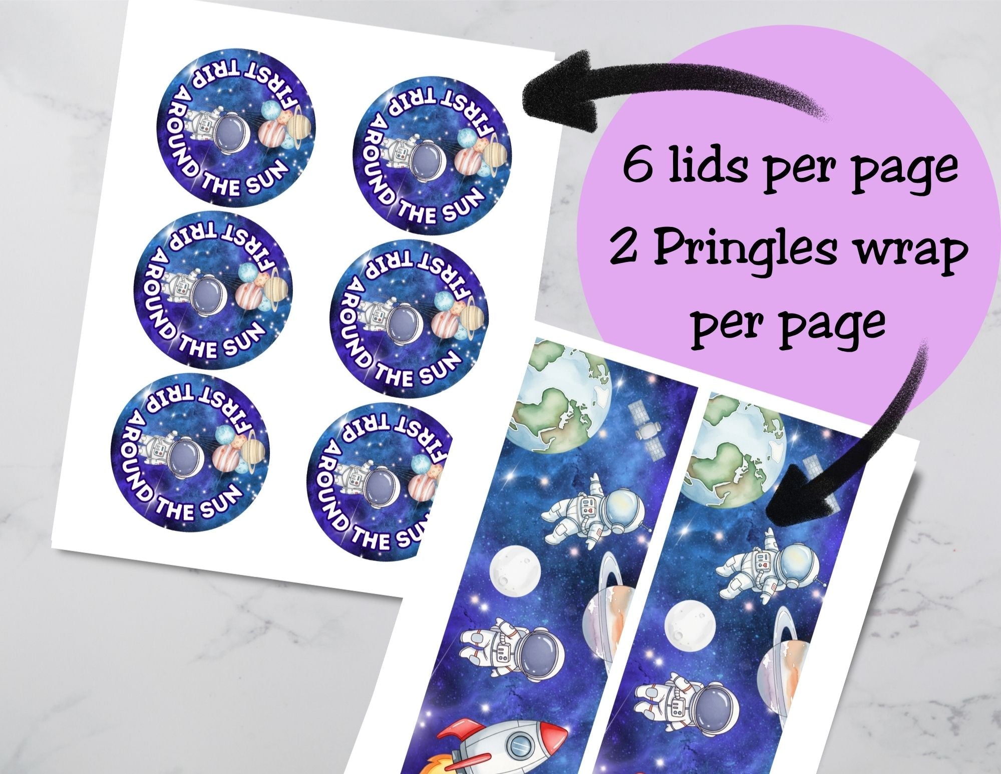 First Trip Around the Sun Pringles Can Label & Lid – Space First Birthday Party Favor