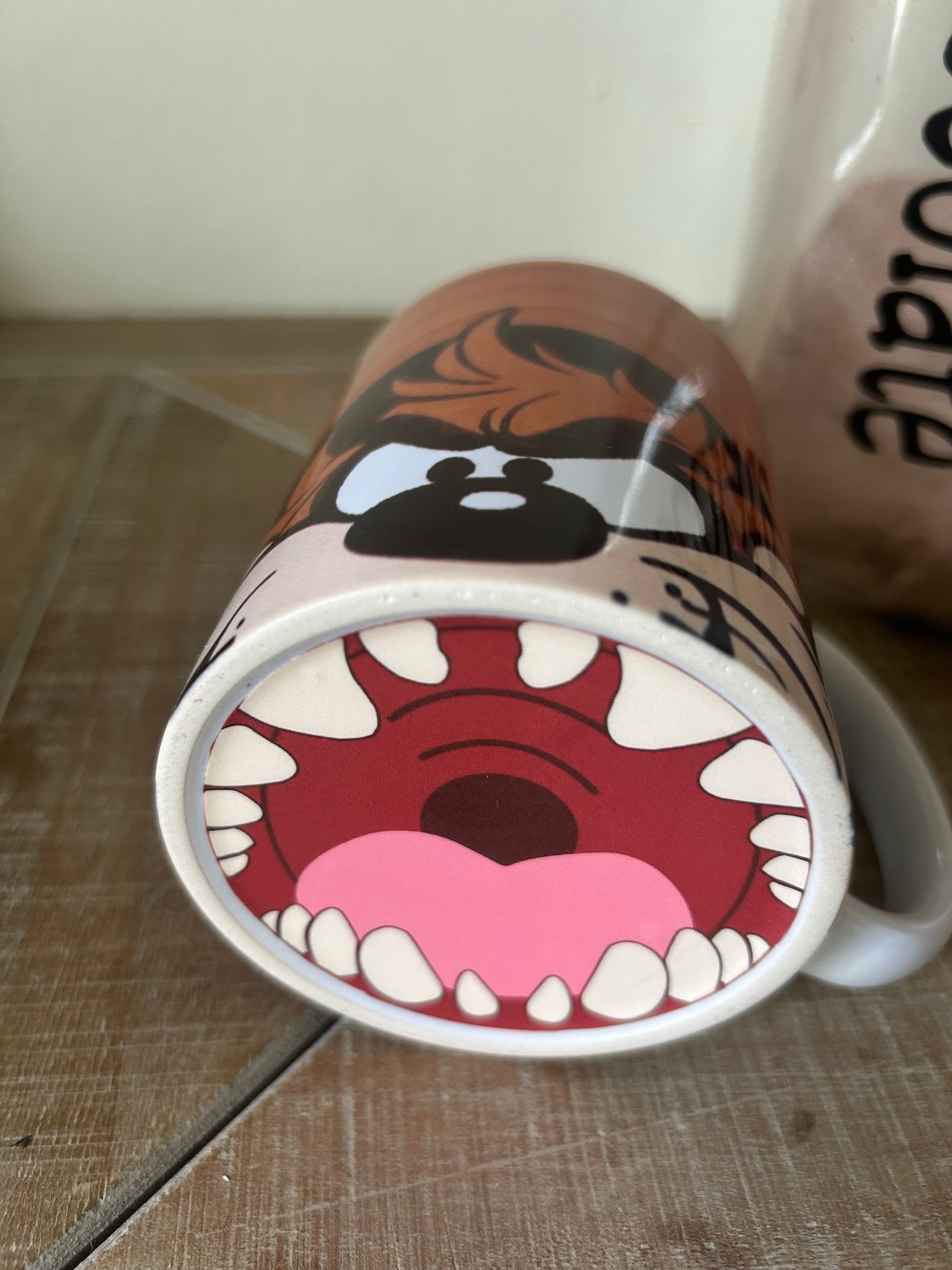 ✔️ Mouth graphic on bottom – looks like Taz is ready to devour your drink
