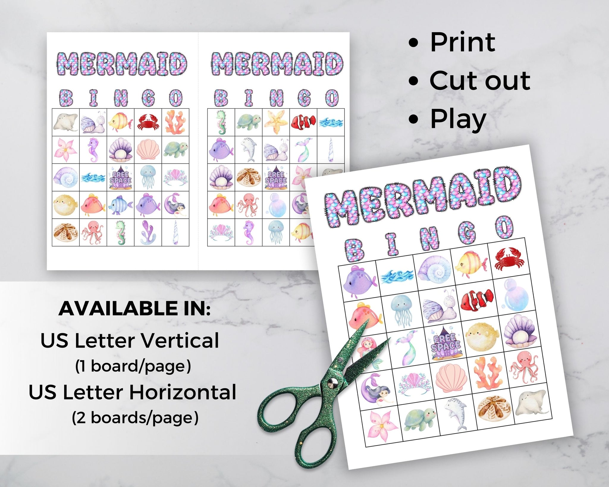Featuring adorable mermaids, sea animals, shells, and ocean treasures, this printable bingo game is perfect for mermaid birthday parties, under-the-sea themes, playdates, and classroom celebrations. It’s easy enough for young players and fun for groups of all sizes.