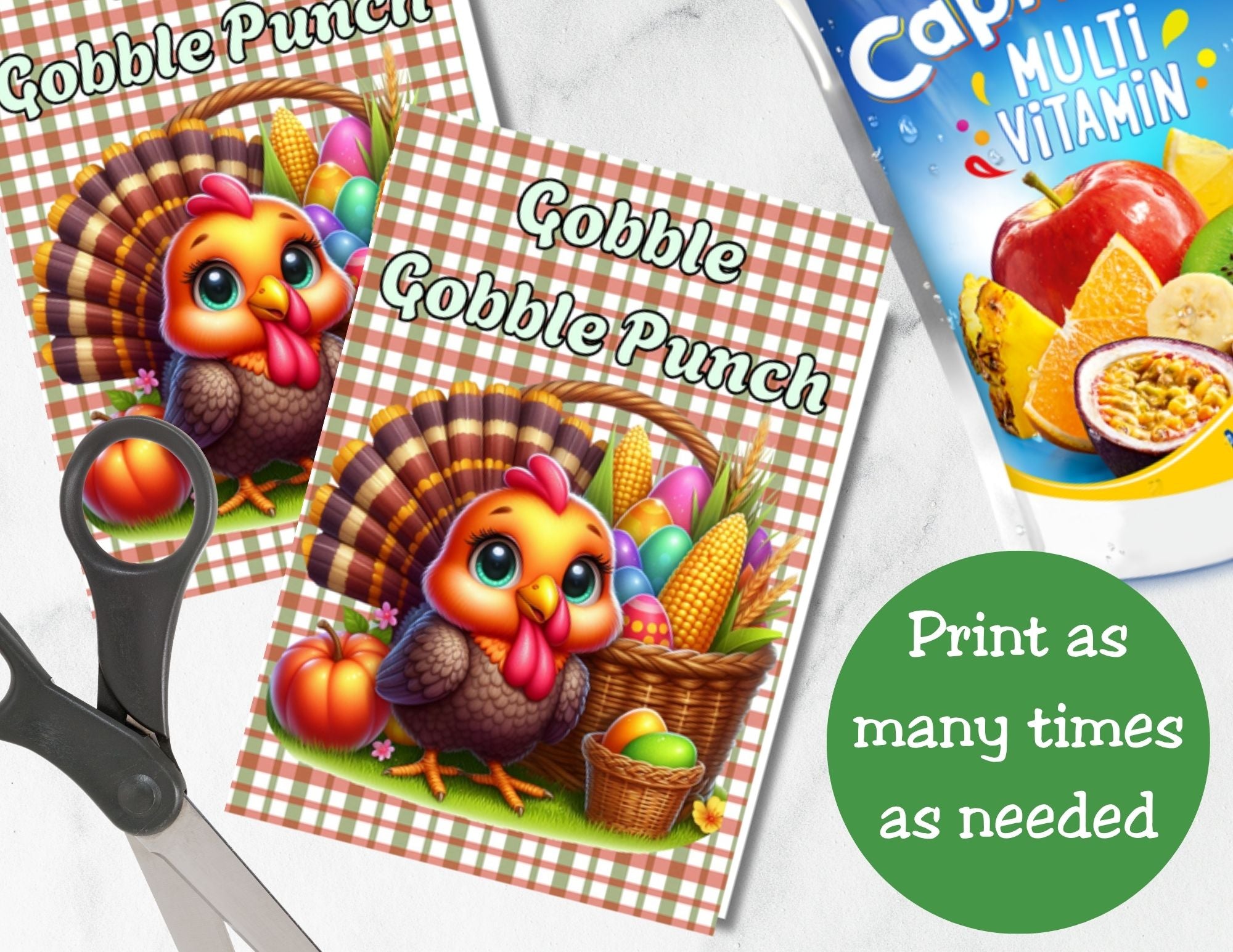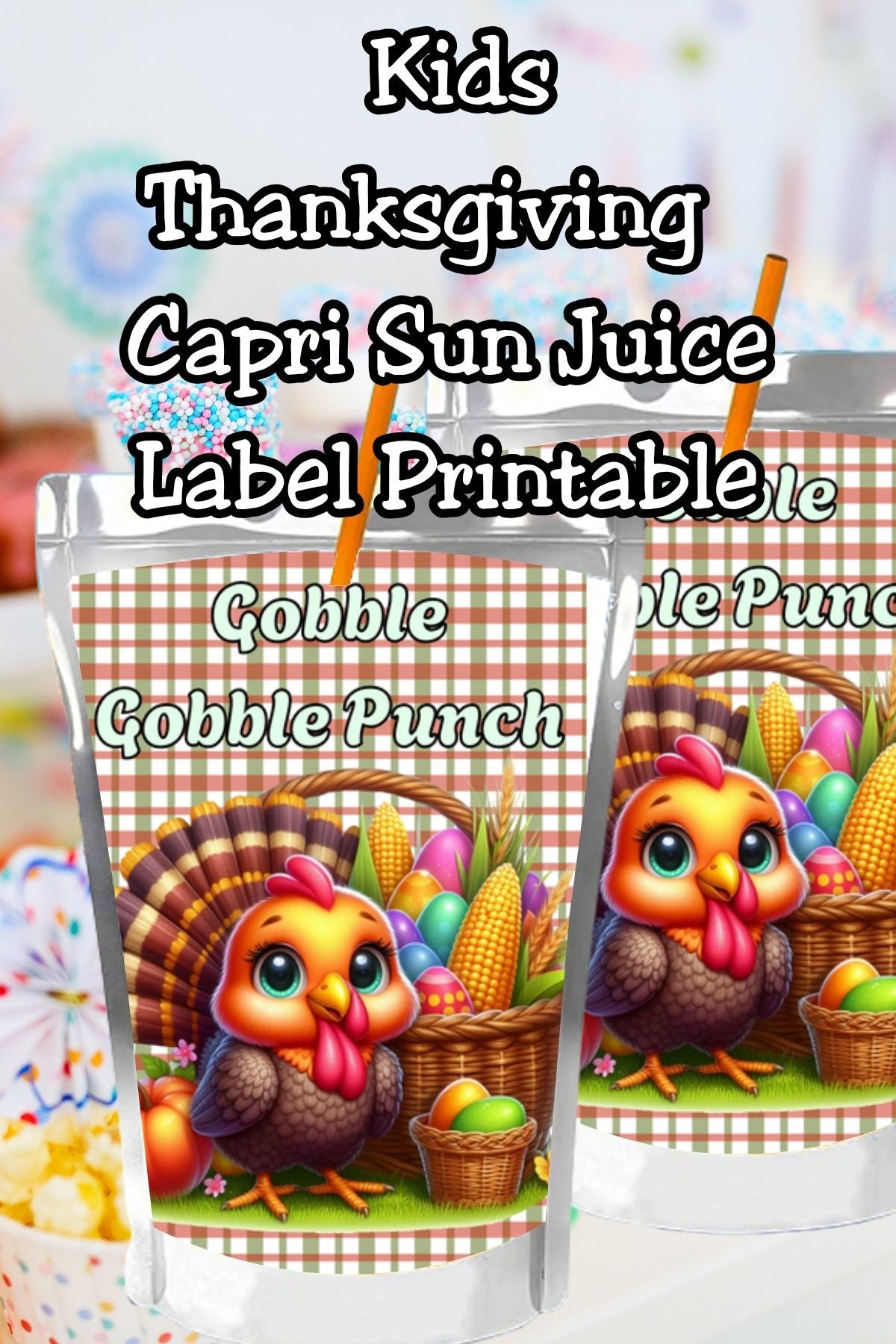 Make your Thanksgiving celebration extra festive with this adorable Gobble Gobble Punch Capri Sun label printable! Perfect for Thanksgiving dinner, Friendsgiving gatherings, or classroom parties, these fun drink labels bring cheerful holiday vibes to every sip.