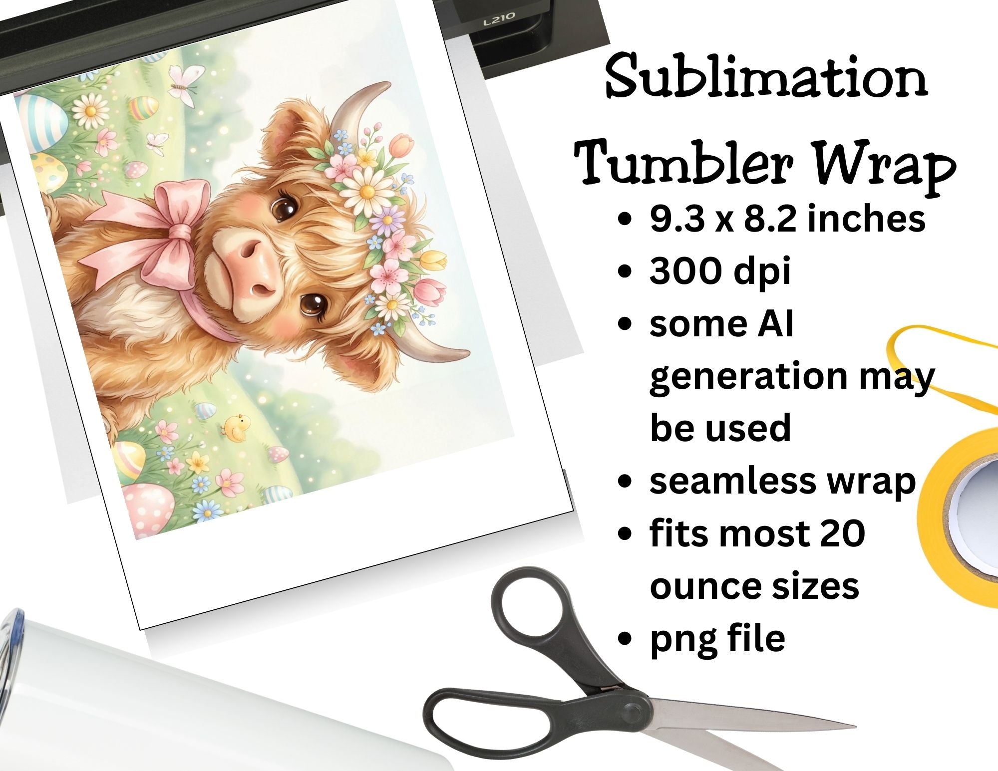 This easter tumbler wrap is perfect for makers looking for a high-quality highland cow png and on-trend tumbler wrap design for spring launches.