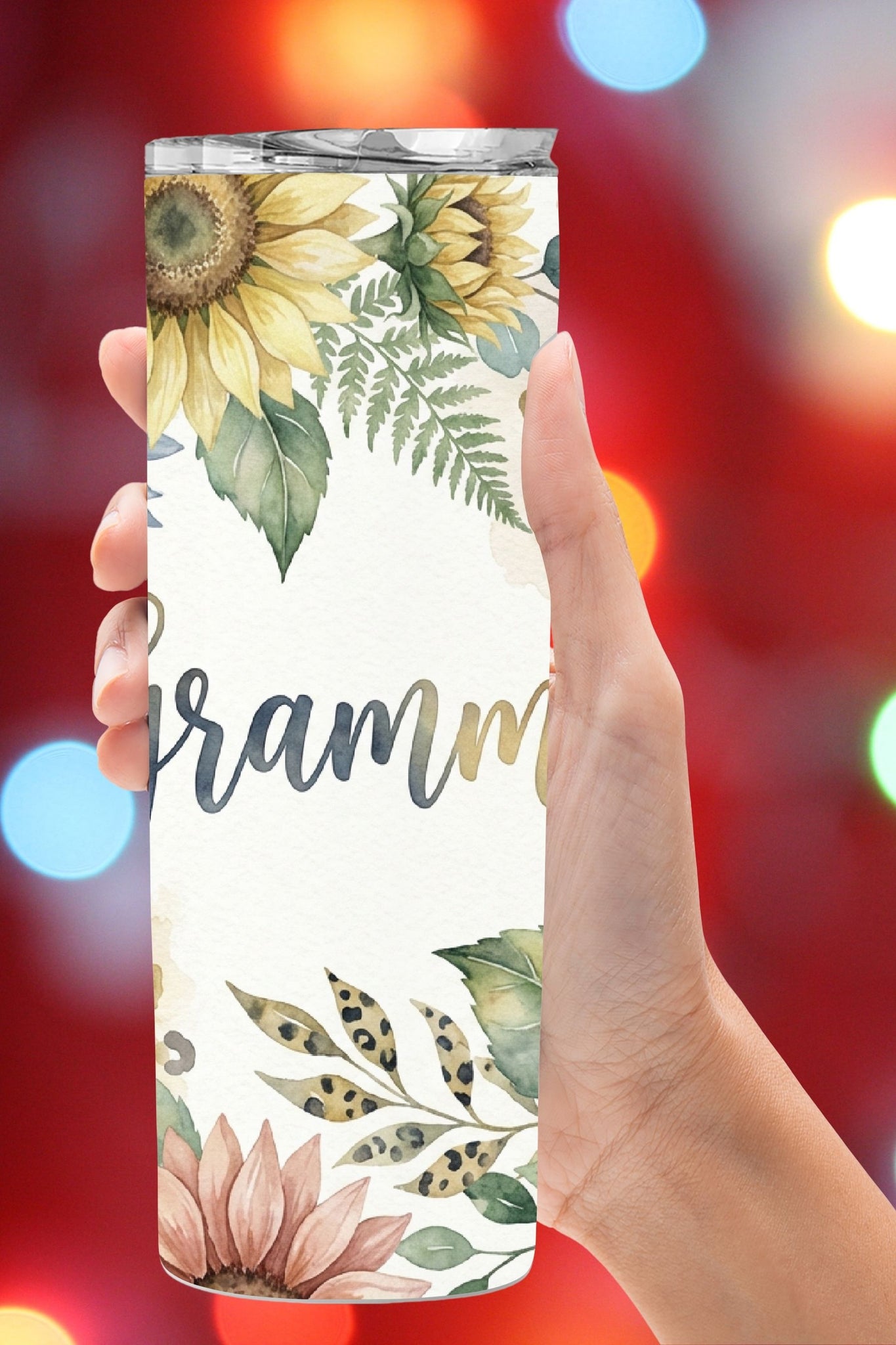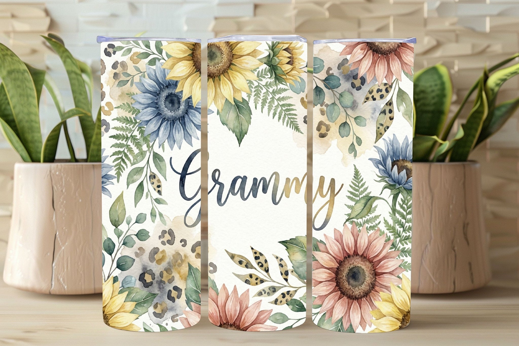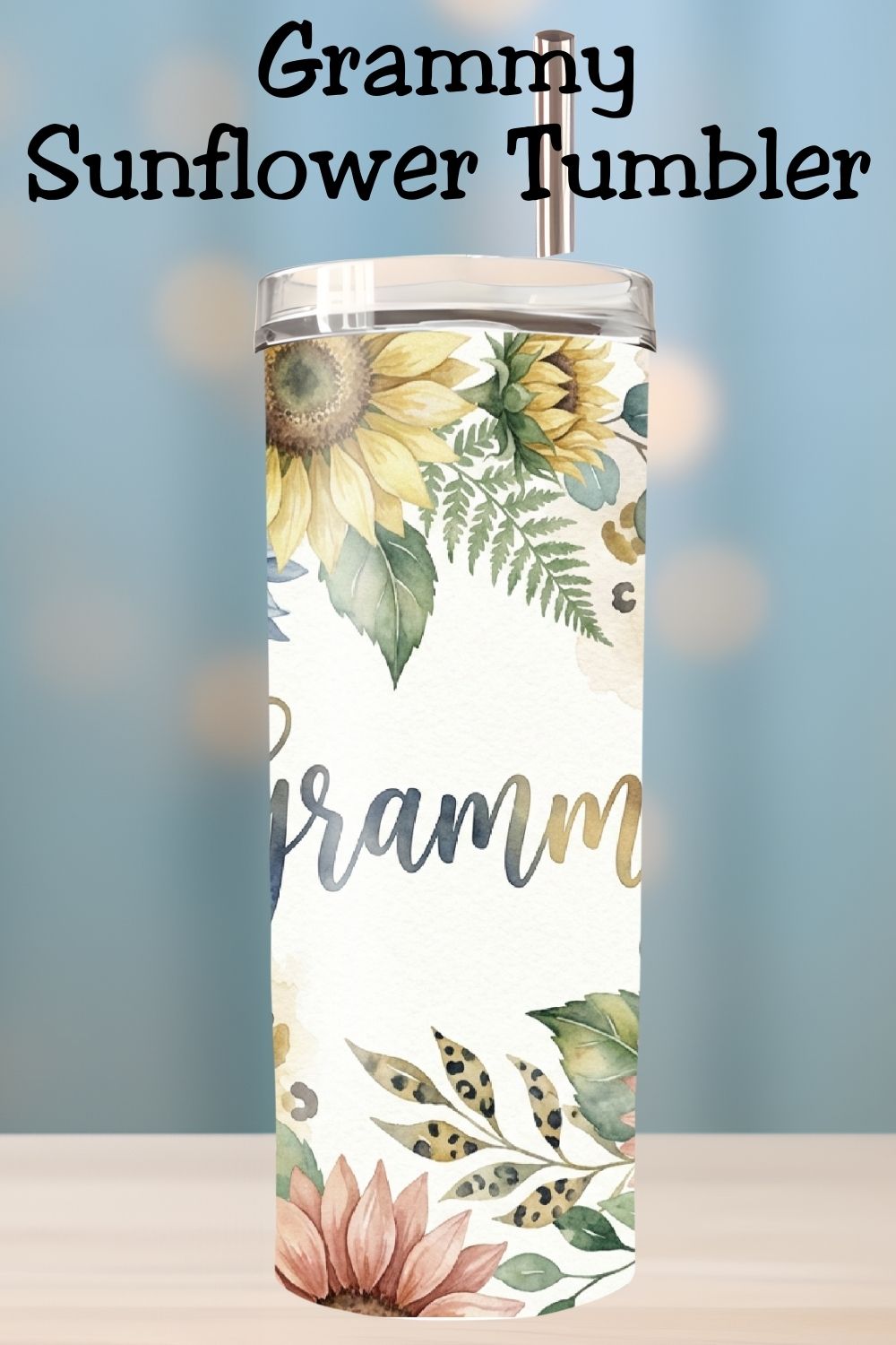 Celebrate Grammy with a soft, elegant floral tumbler featuring watercolor sunflowers, leafy greenery, and warm neutral accents. This timeless design is perfect for Mother’s Day, birthdays, Christmas, or a just-because gift to remind Grammy how loved she is.