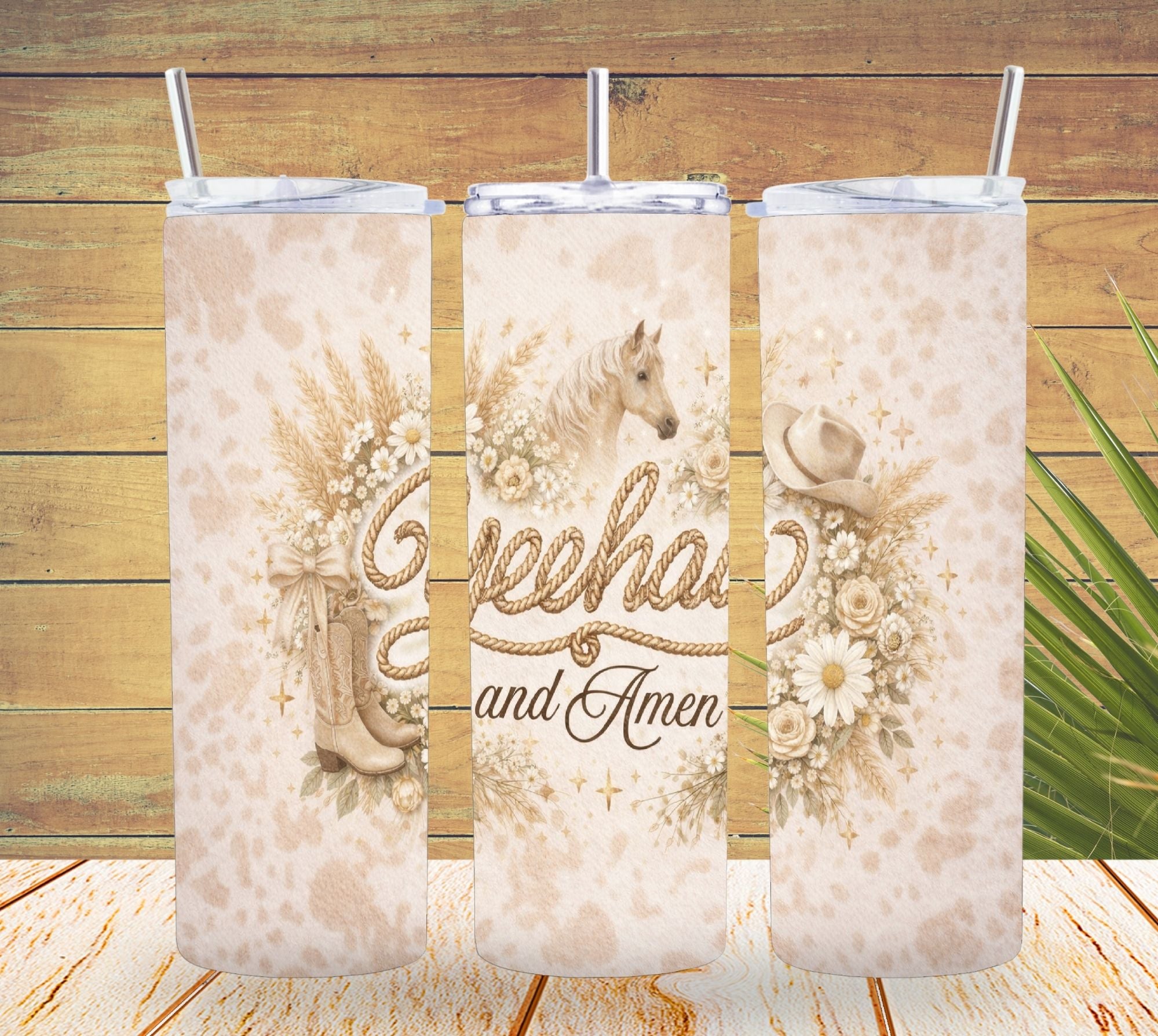 Neutral Boho Yeehaw and Amen Tumbler *850