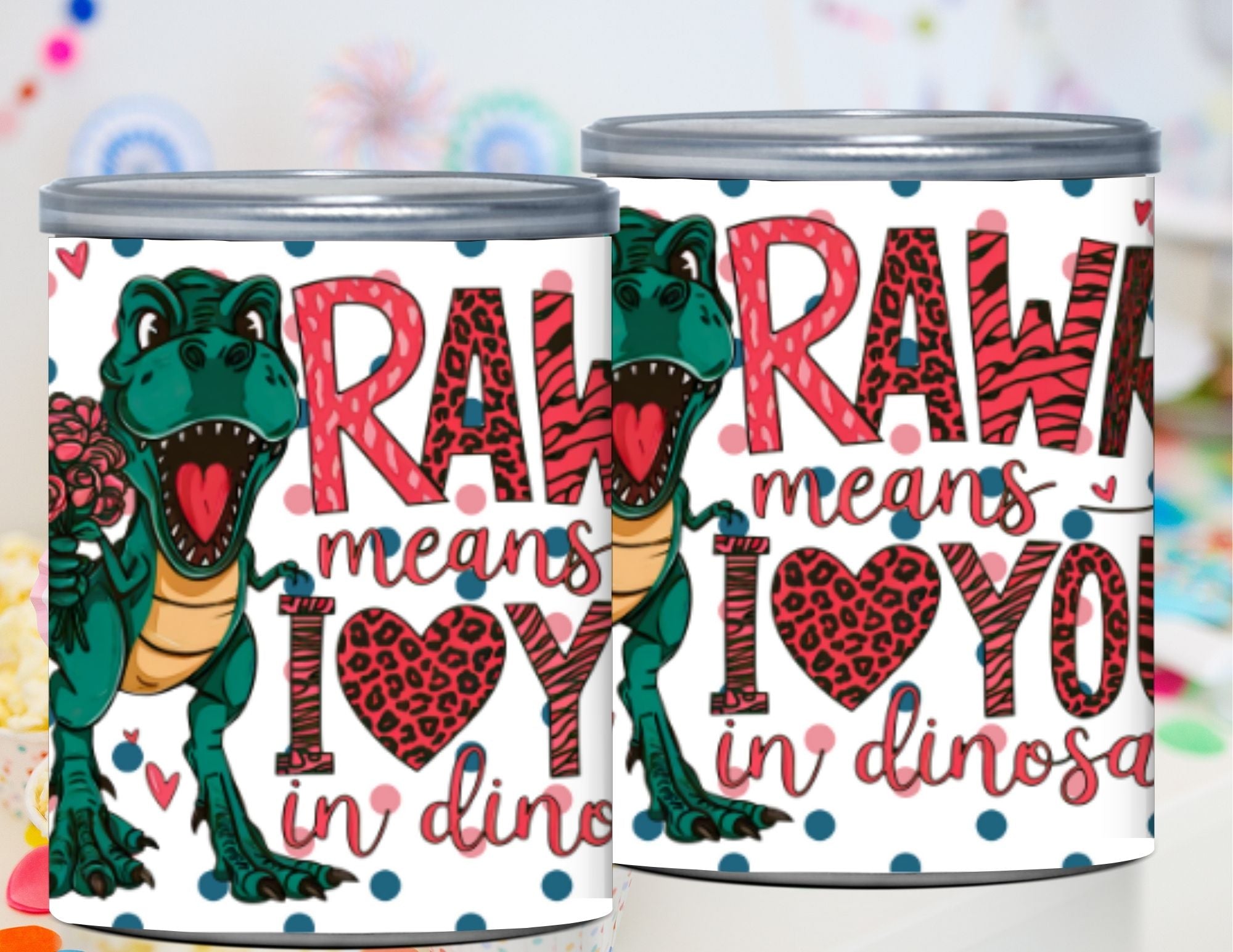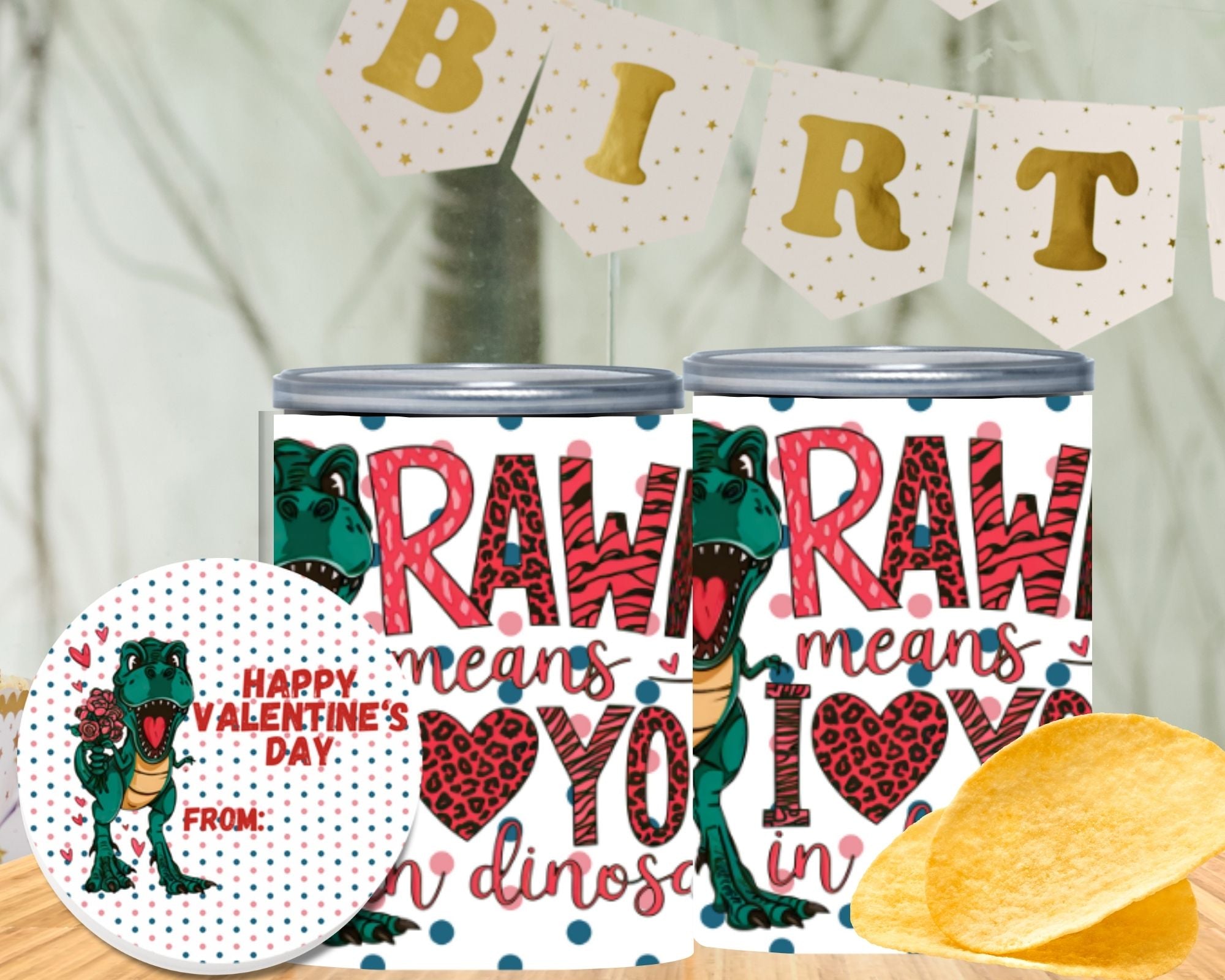 Dinosaur Valentine wrap label for mini Pringles cans