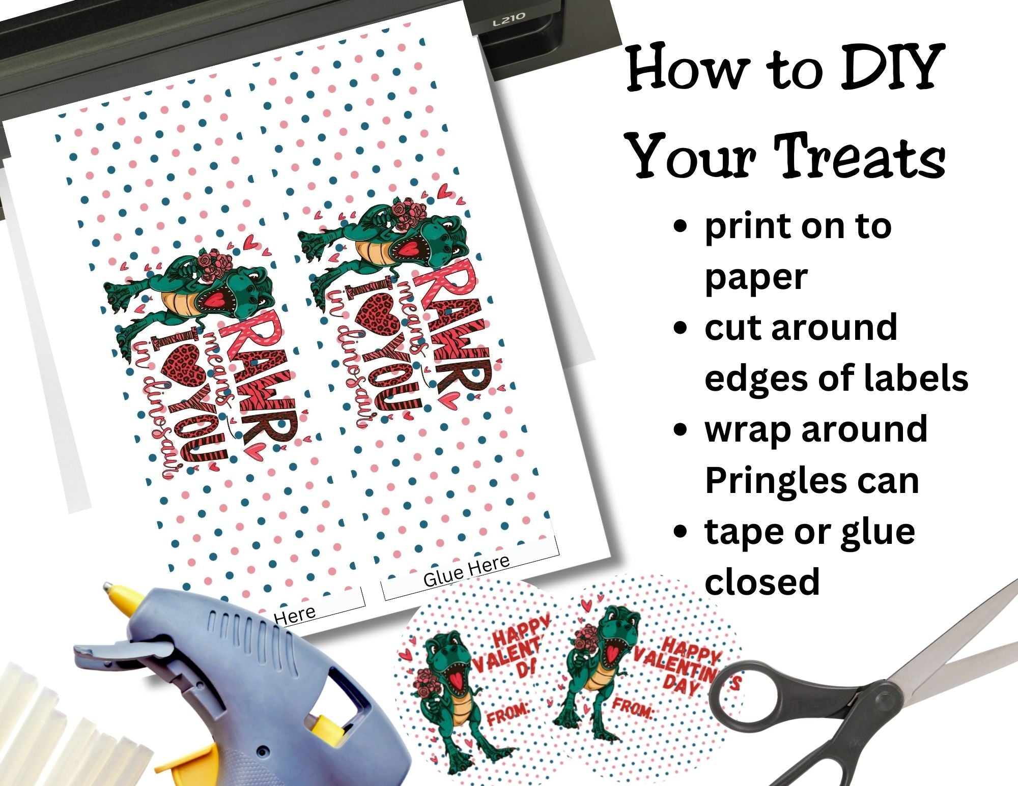 Dinosaur Valentine Pringles Label & Lid Printable