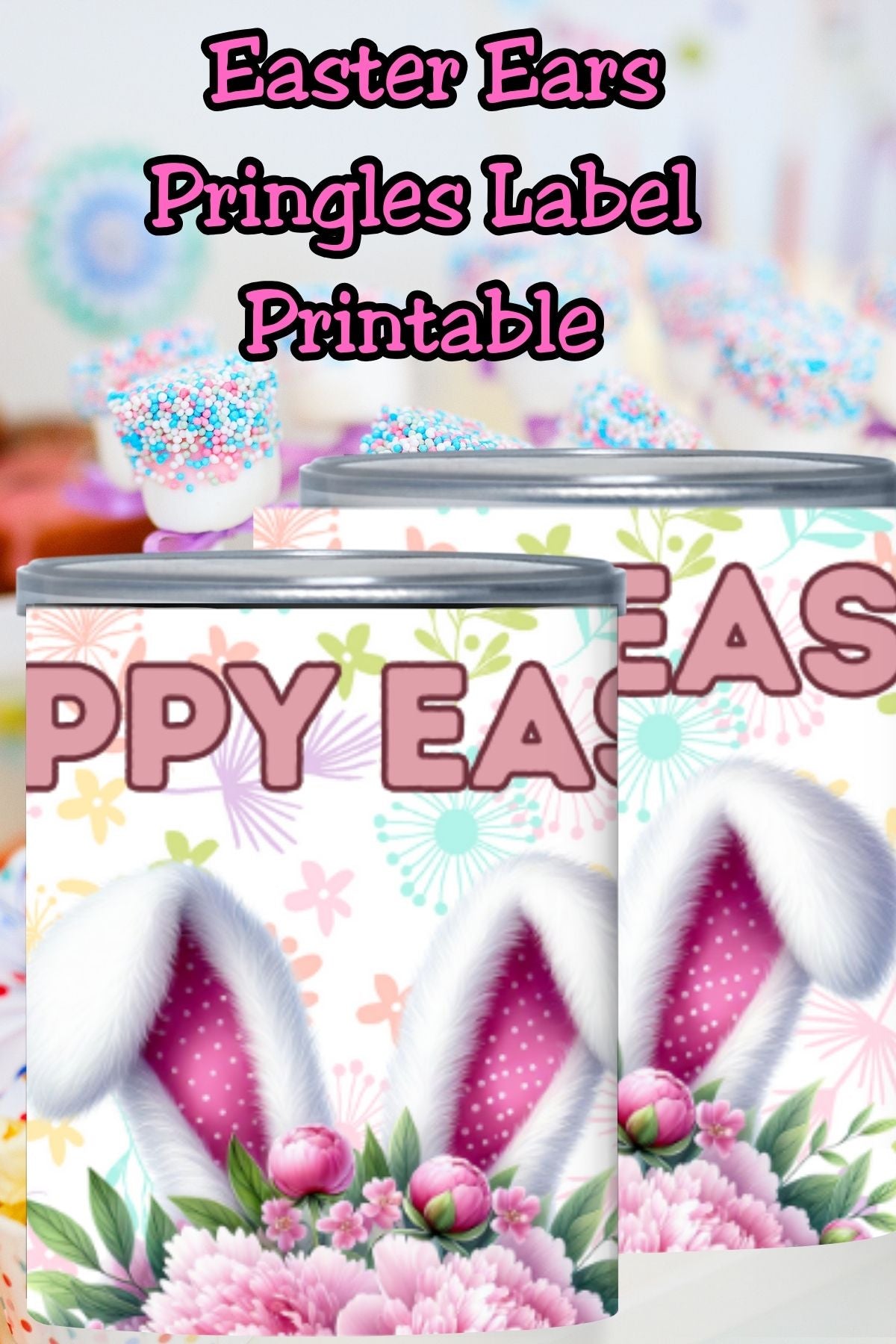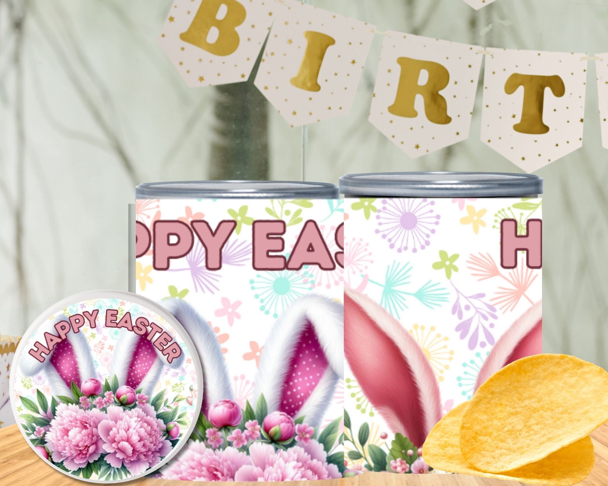 Easter Pringles Can Label & Lid – Floral Bunny Ear Easter Snack Wrap Printable