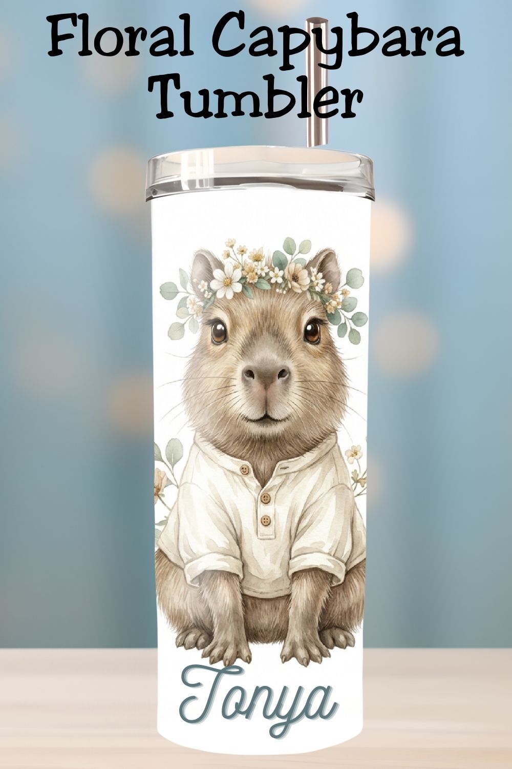 Floral Capybara Tumbler – Boho Cute Animal Design *873