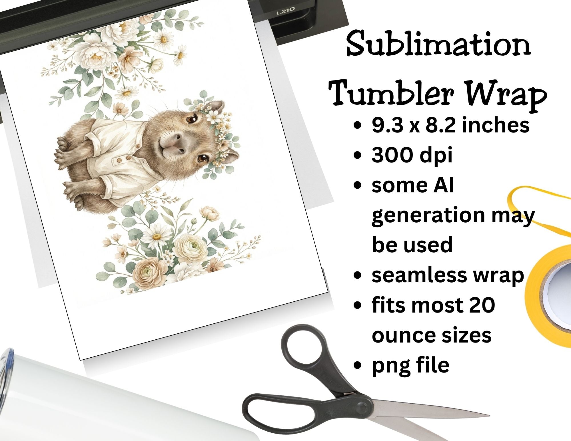 This design fits seamlessly into trending styles like floral capybara, cute animal tumbler, neutral flower art, and tumbler png designs customers love.