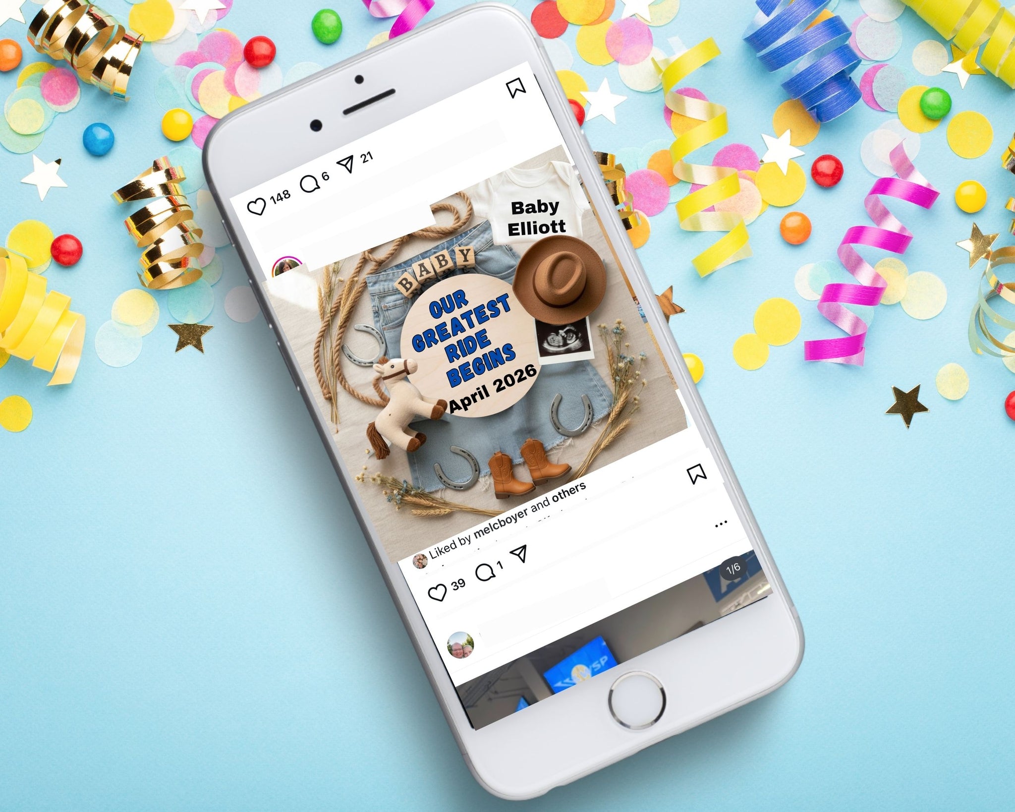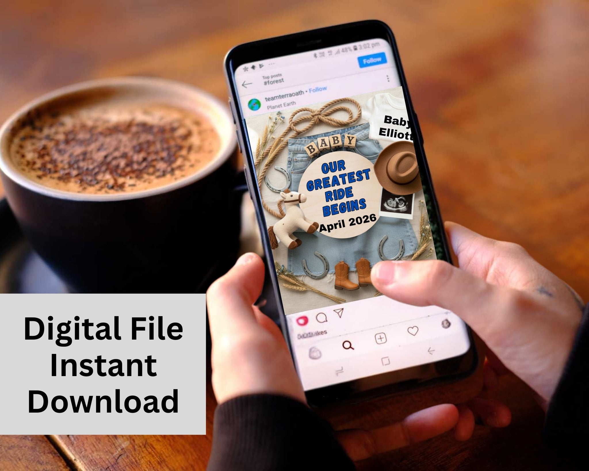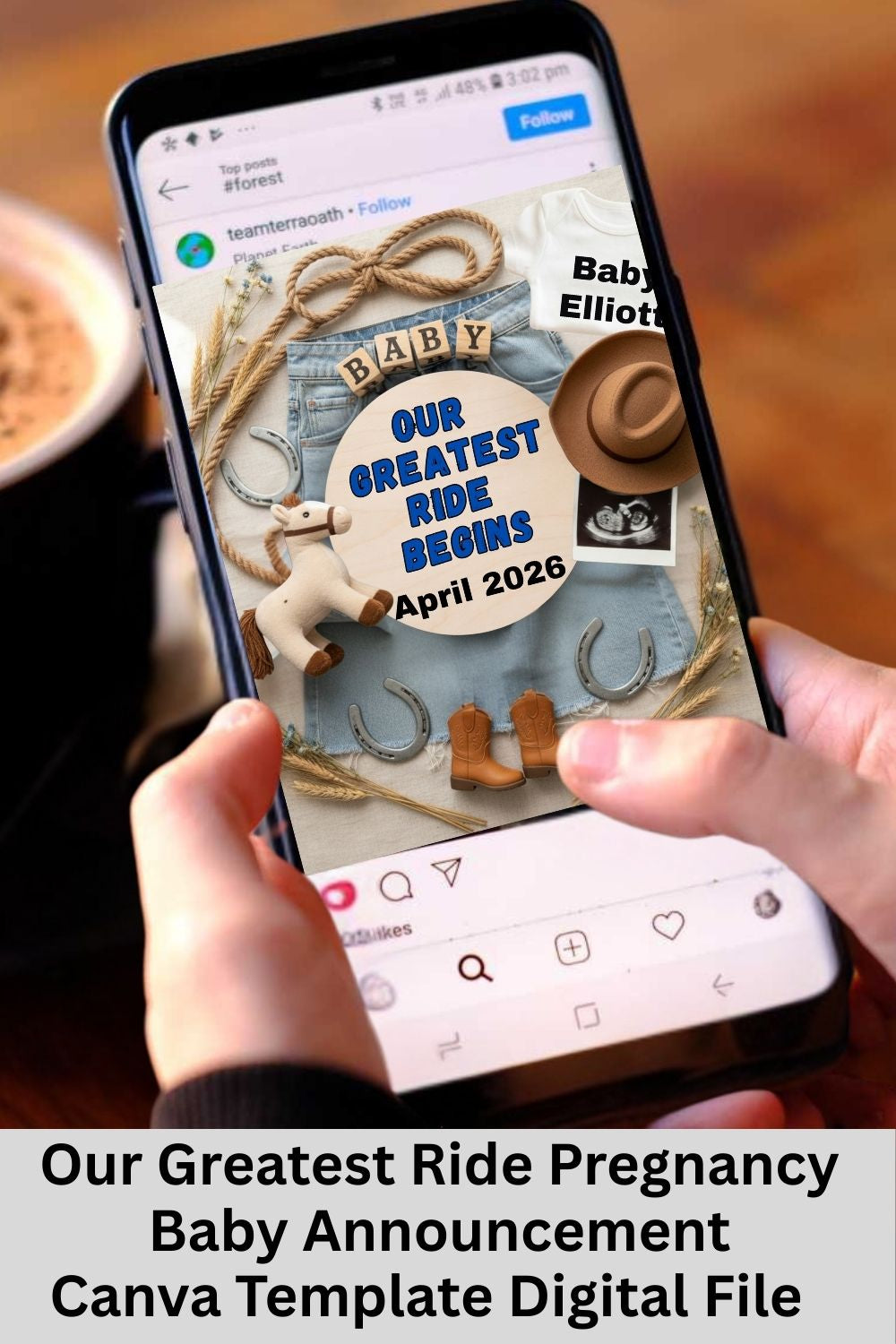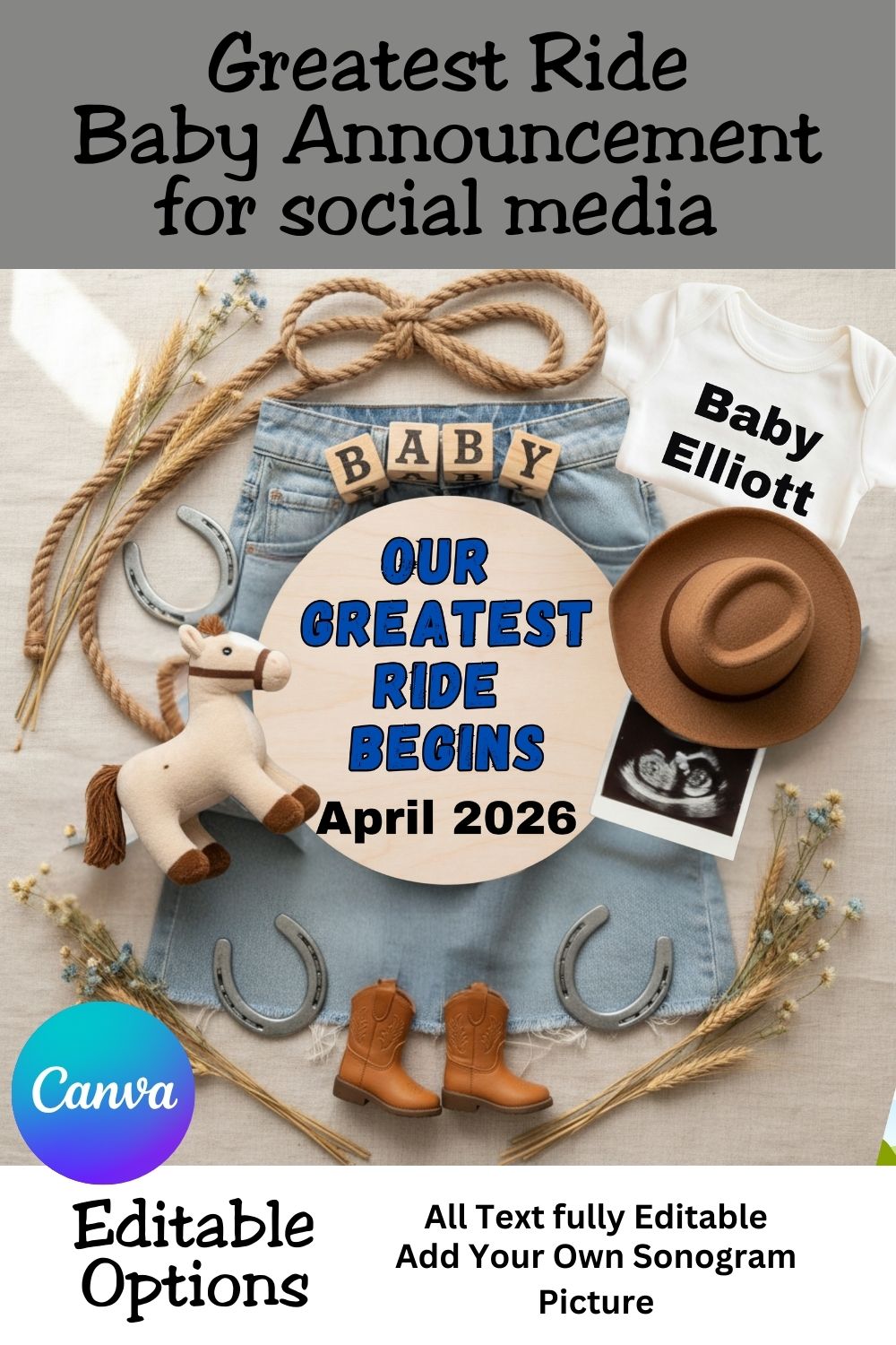 Whether you’re planning a western pregnancy announcement, a rustic baby reveal, or a heartfelt country-style post, this design helps you share the moment beautifully and effortlessly.