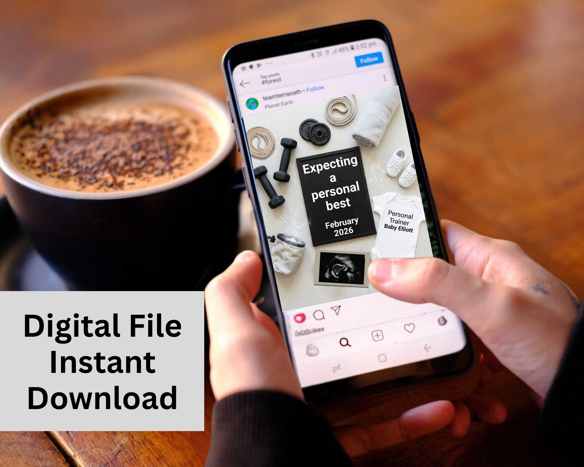 Celebrate your biggest personal best yet with this modern Gym Pregnancy Announcement Canva Template, designed for fitness lovers, gym parents, and personal trainers. This stylish fitness-themed baby announcement features a clean, neutral flat lay with workout-inspired details—perfect for sharing your exciting news online or saving as a keepsake.