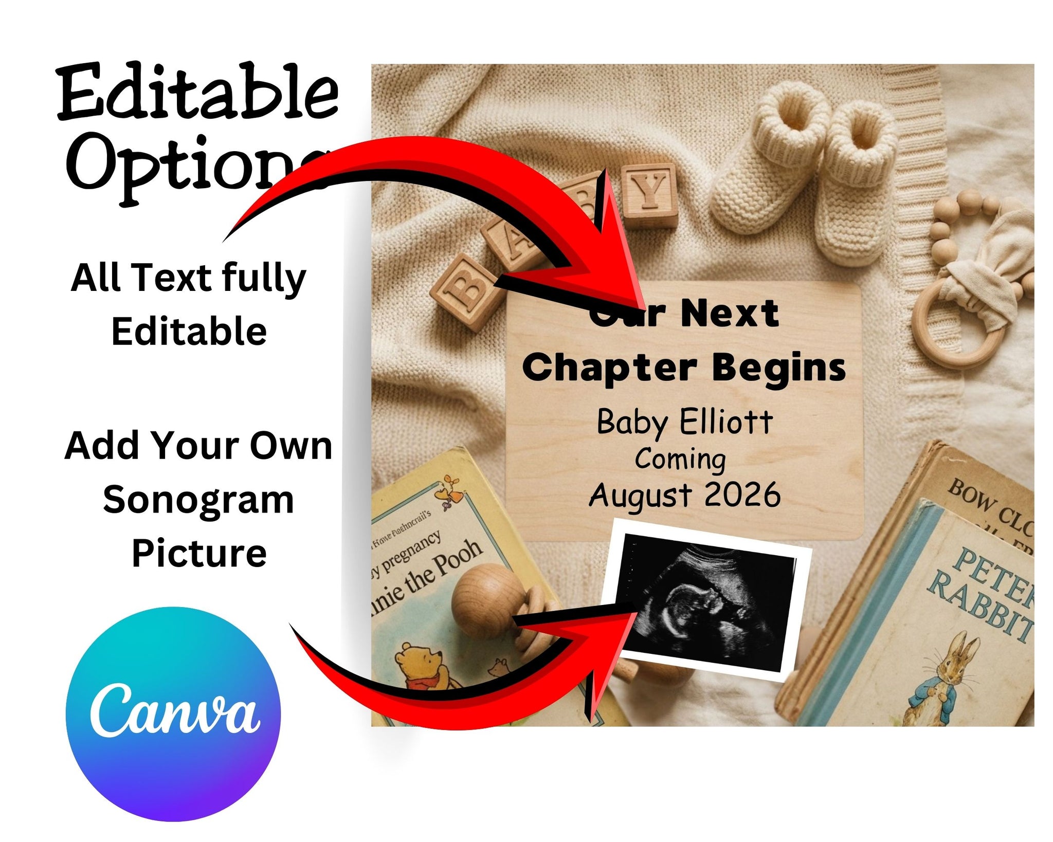 After purchase, you’ll receive access to a Canva template you can edit in minutes. Simply update the text, adjust details if desired, and download your finished announcement to share or print.