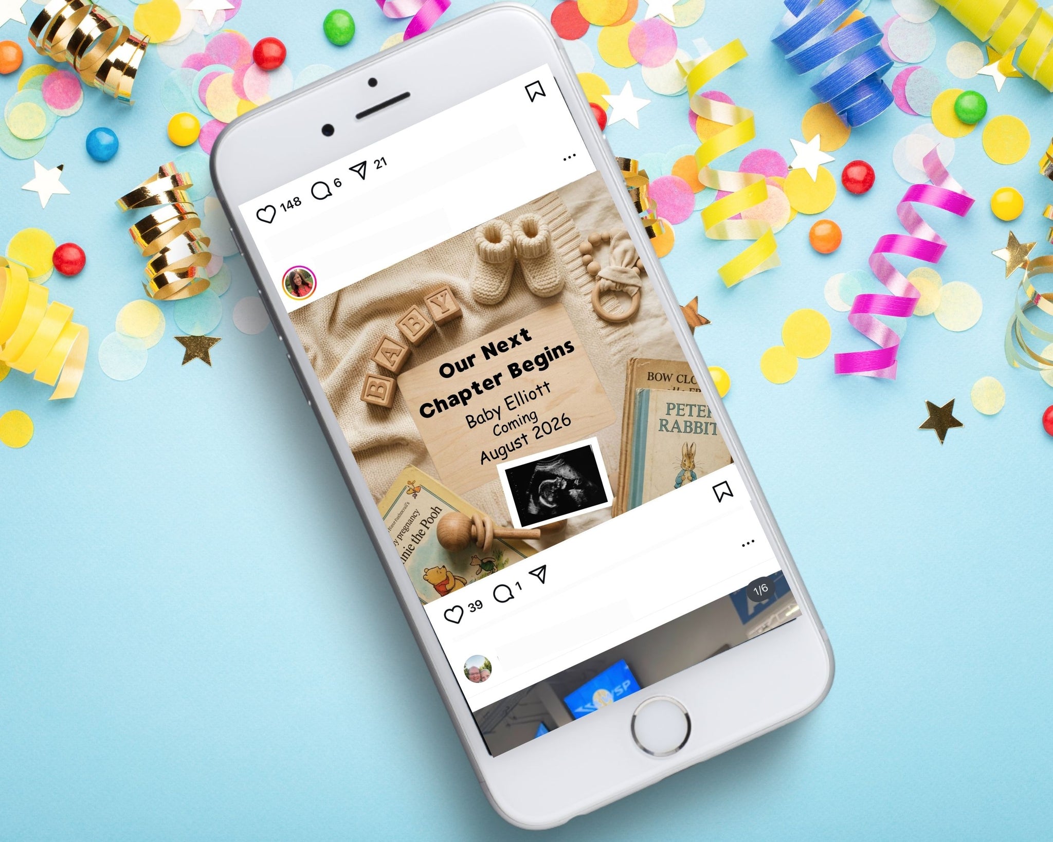 Inspired by cozy, literary aesthetics and the beloved “next chapter” trend, this bookish baby announcement is perfect for social media reveals, private messages, or printing as a keepsake. Whether you’re a lifelong reader, part of a book club, or raising the next little bookworm, this design tells your story in a thoughtful, creative way.