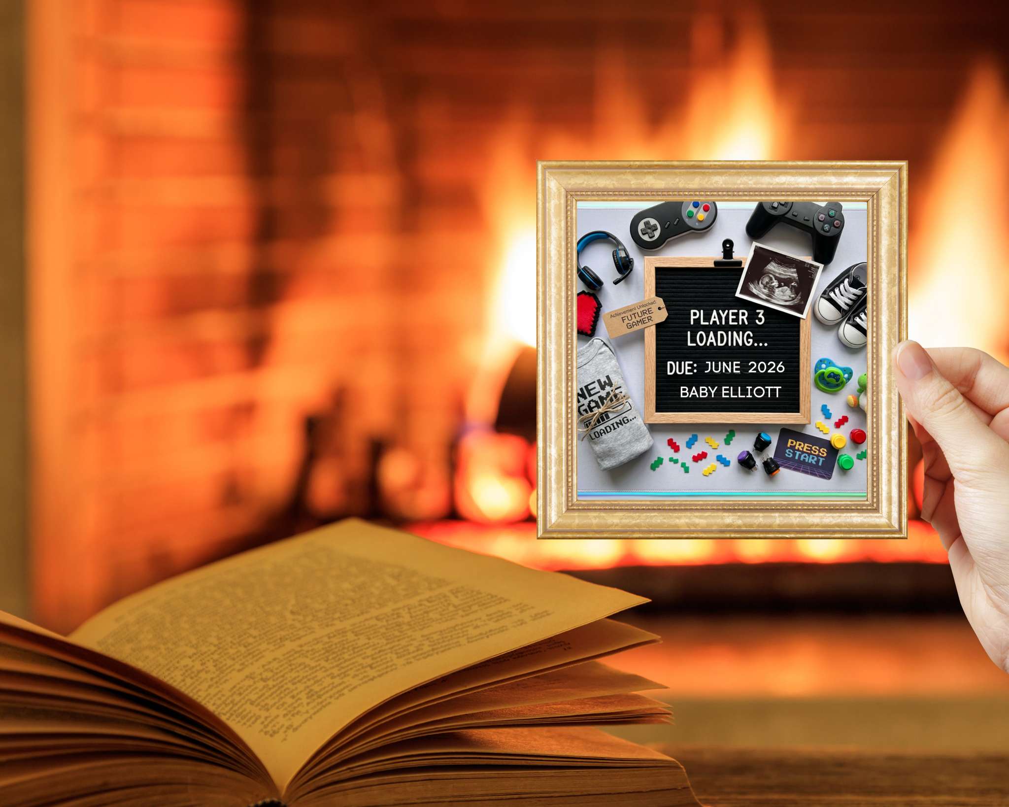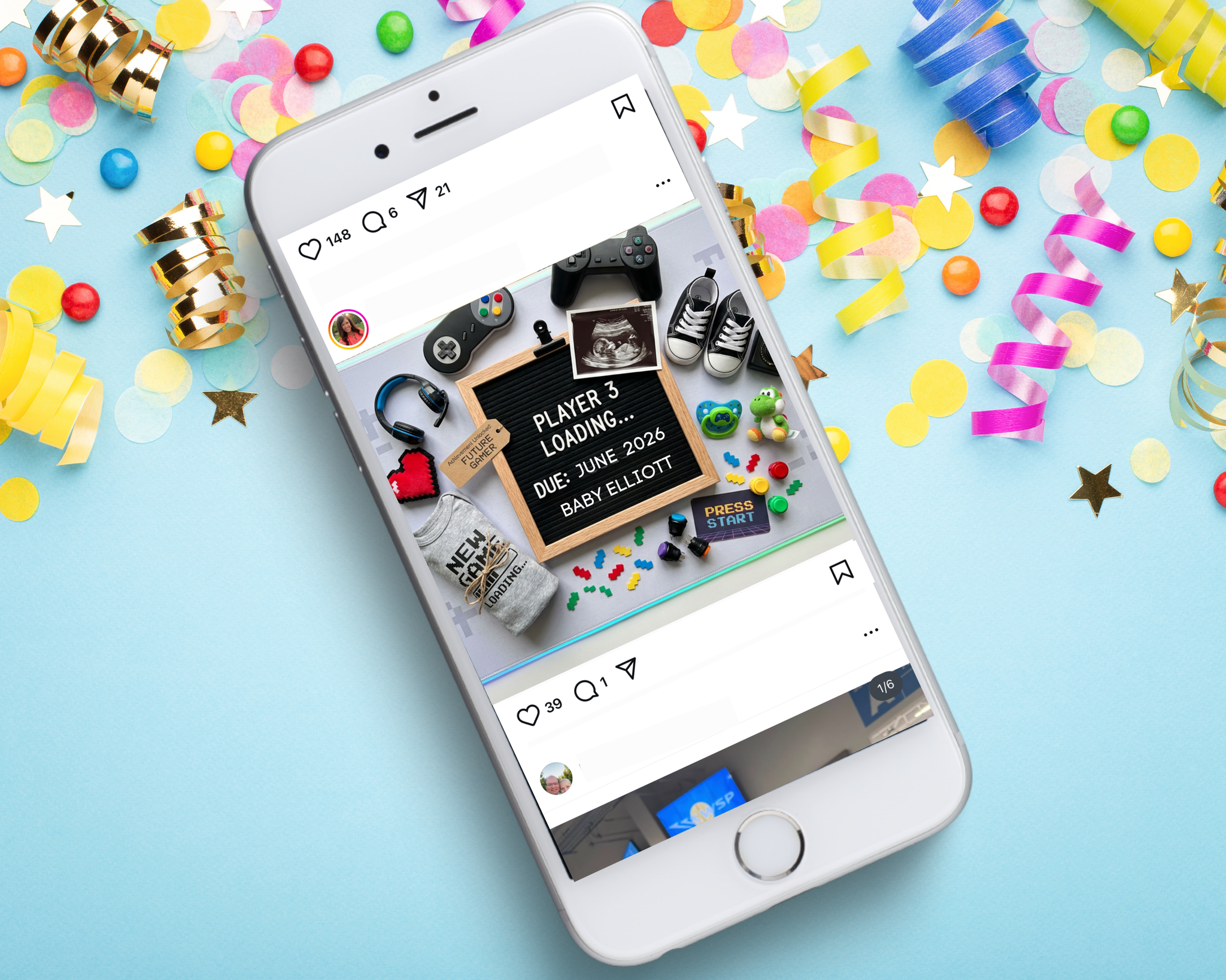 This gaming pregnancy announcement is a playful way to reveal your biggest level-up yet and makes a memorable announcement for gamer friends, family, and online communities.