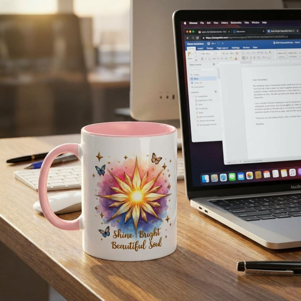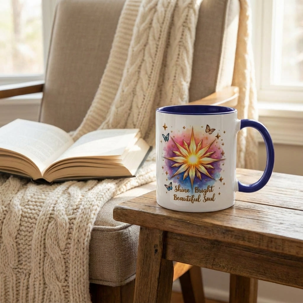 Start your day wrapped in encouragement with our “Shine Bright Beautiful Soul” Inspirational Quote Mug — a radiant blend of motivational art, uplifting affirmation quotes, and trendy butterfly clipart designed to brighten every sip.