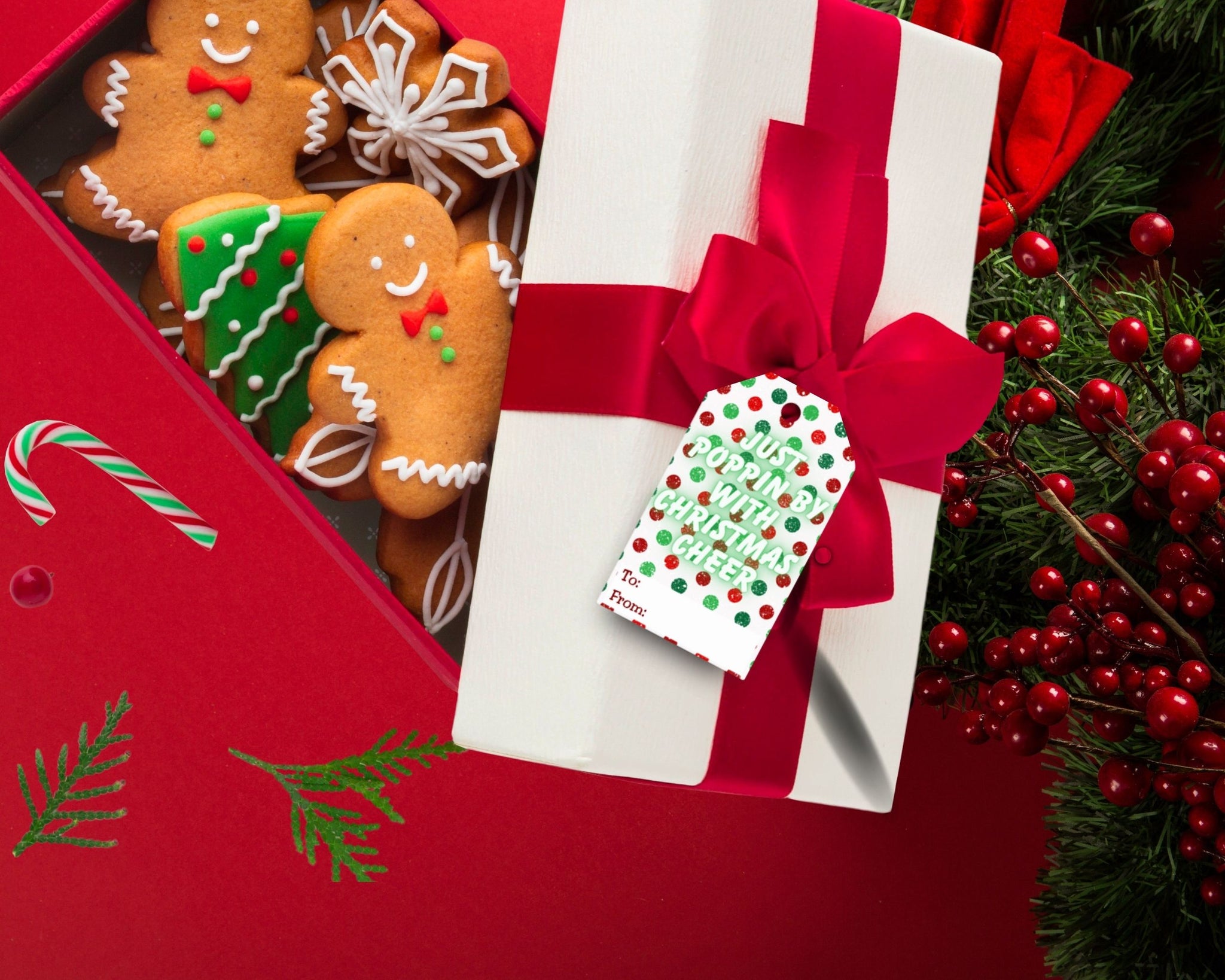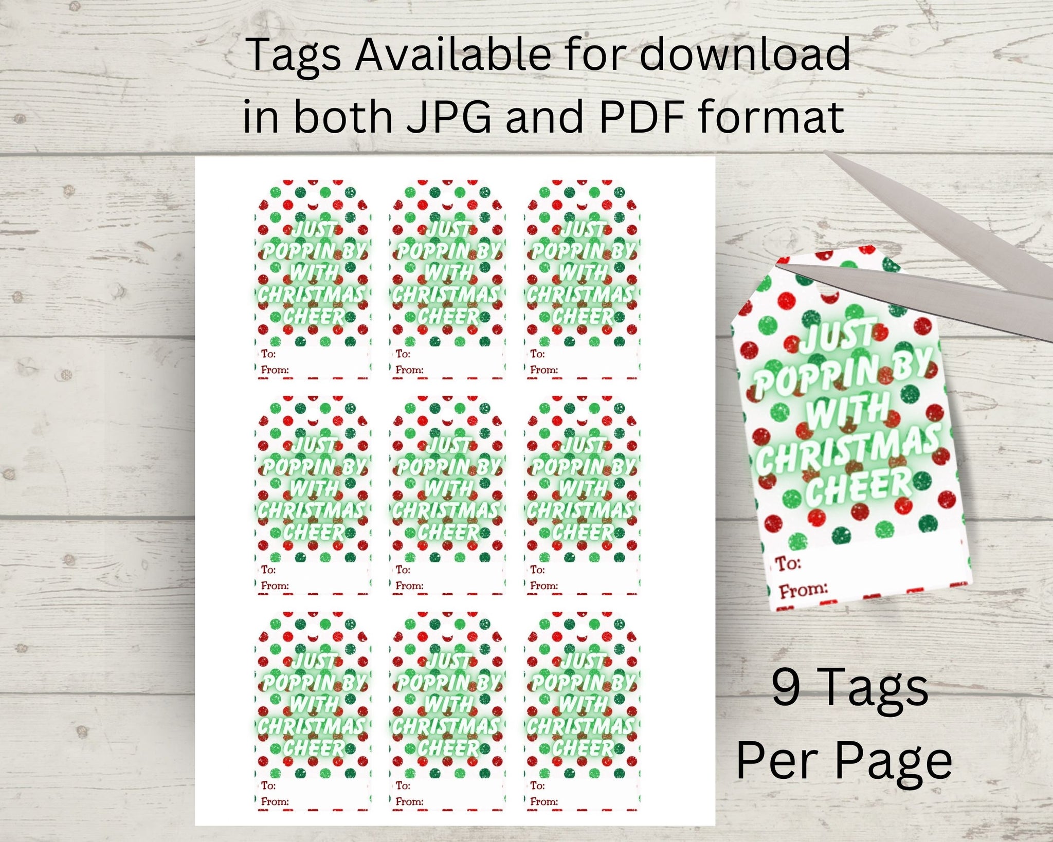 Add a fun and festive touch to your holiday gifts with these Poppin’ Christmas Printable Gift Tags! Featuring a cheerful red and green polka dot design and the playful saying “Just Poppin’ By With Christmas Cheer!”, these tags are perfect for popcorn treats, soda pop gifts, or any “poppin” Christmas surprise! 🍿🎅✨